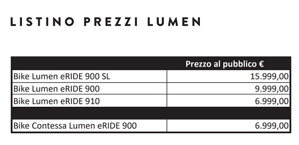La nuova collezione Lumen comprende 4 modelli: Lumen eRIDE 900 SL, Lumen eRIDE 900 e Lumen eRIDE 910, e un modello Contessa dedicato.