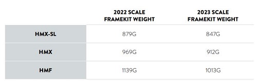 Con la nuovissima Scale RC, il peso della minuteria si è quasi dimezzato, passando dagli 82 g precedenti a 45 g in totale (HMX-SL). Ciò è stato ottenuto riducendo l'uso di inserti metallici tra cui il guidacatena, gli inserti del portaborraccia e una quantità ridotta di parti grazie all'integrazione
